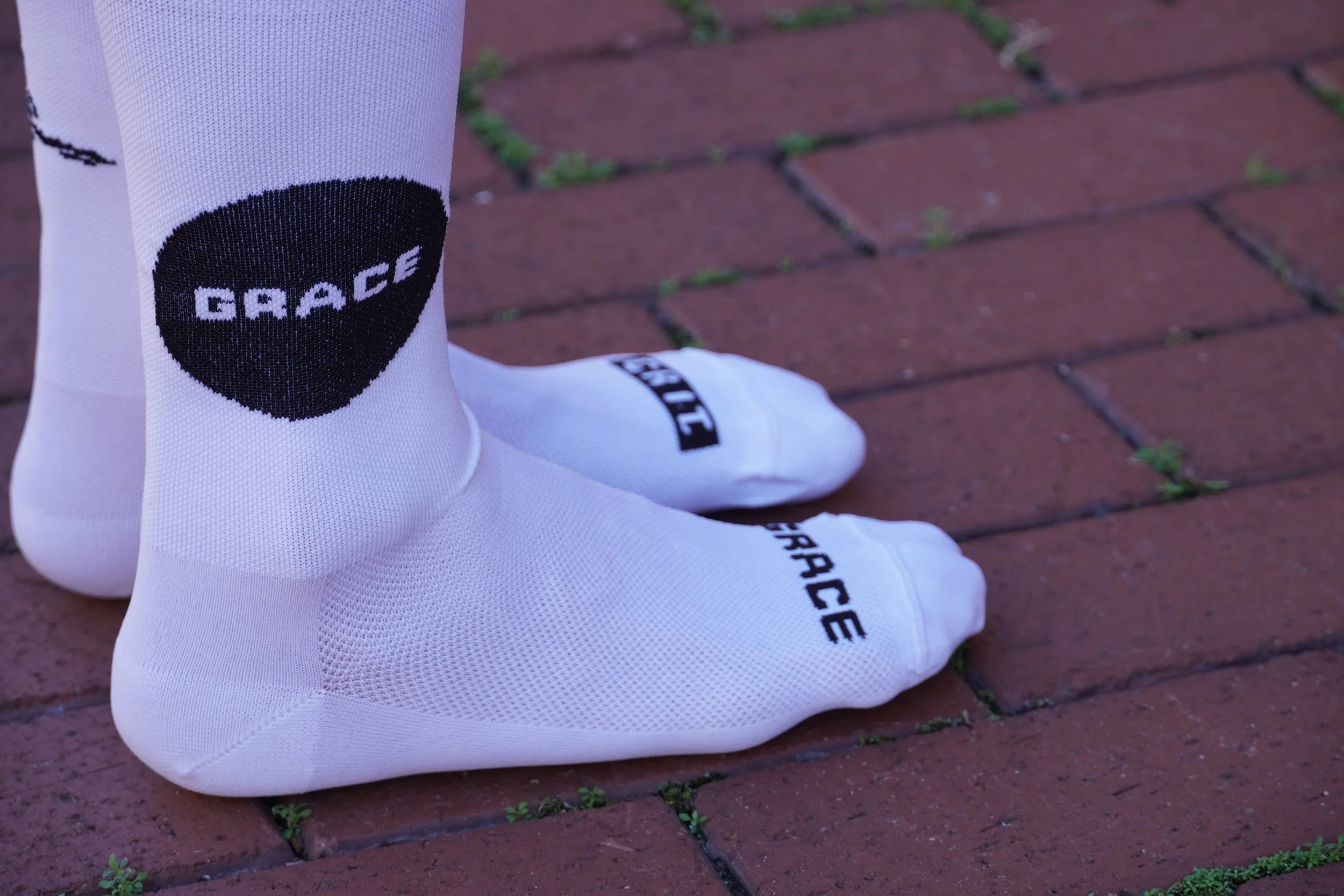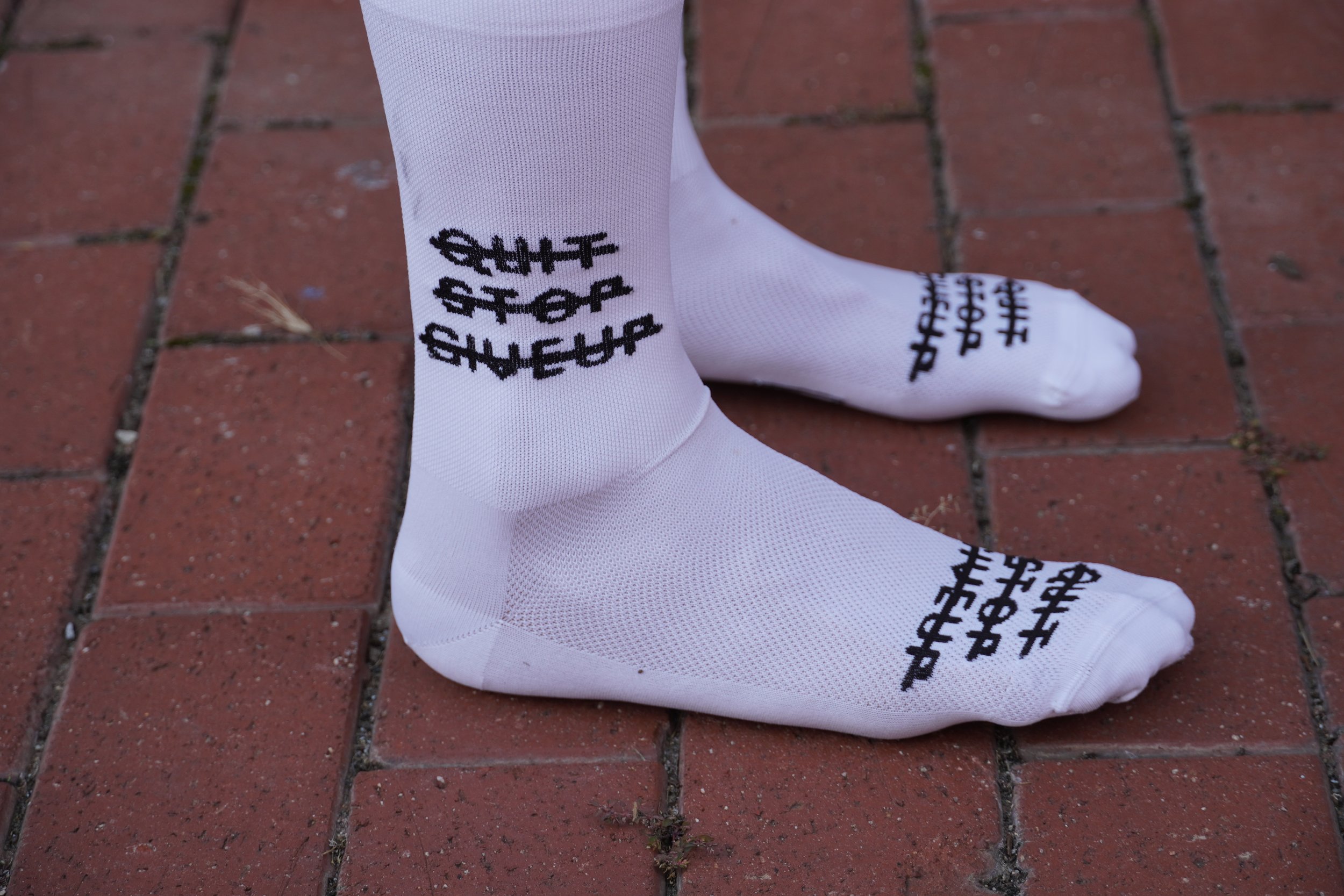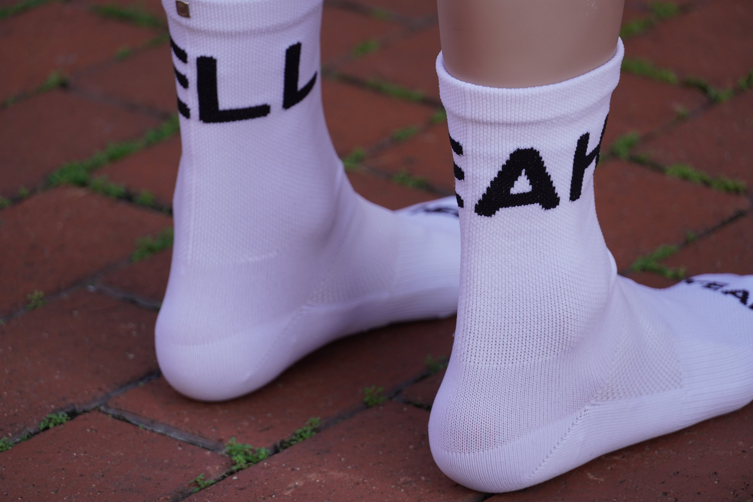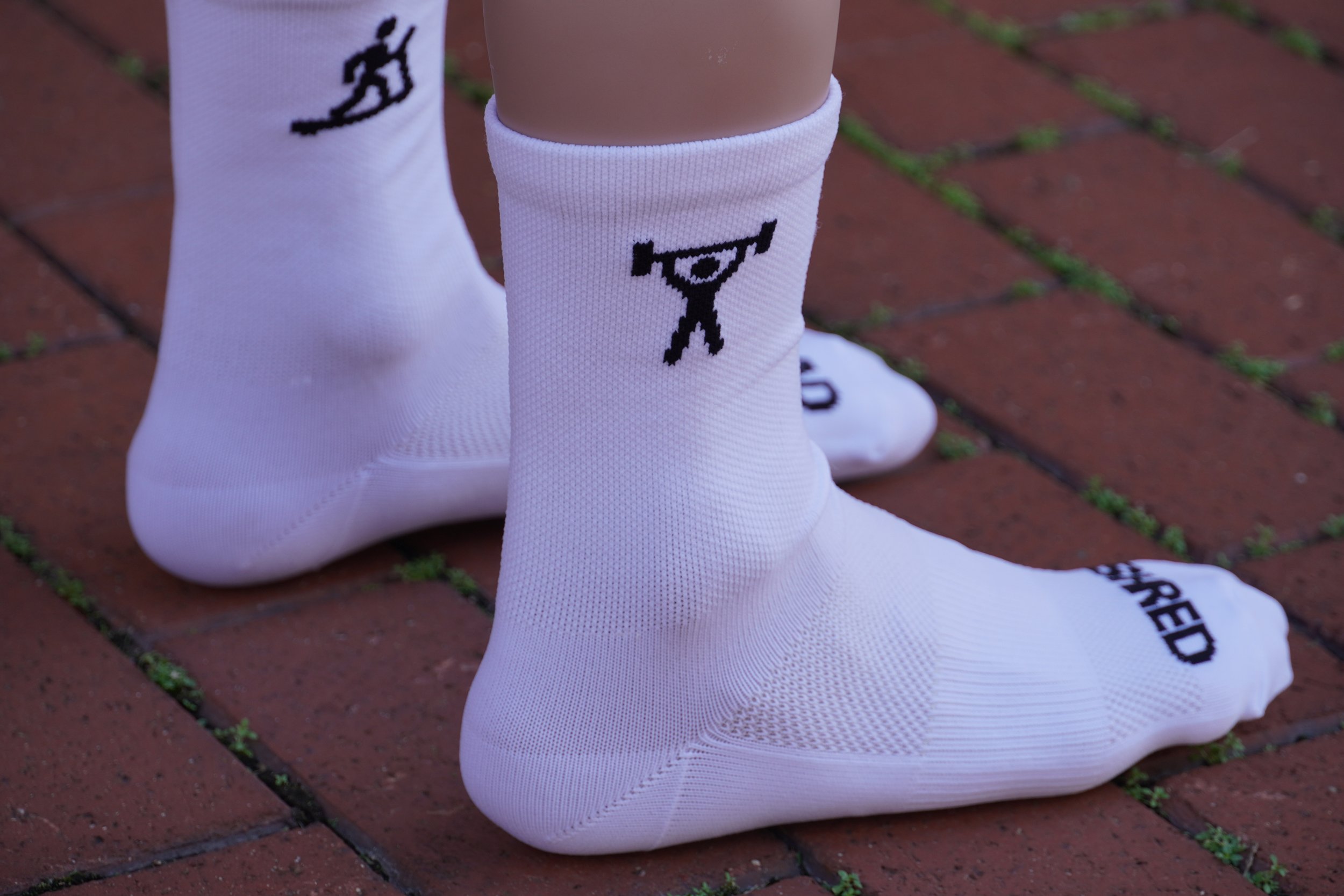 Our socks have designs on the top of the toe, the bottom of the sole, and 360 degrees around the ankle and calf area.
